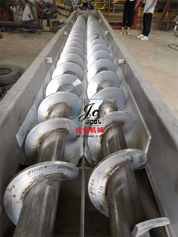 雙螺旋結構:雙螺旋輸送機內部有兩根螺旋軸,分別負責輸送不同的物料或同時輸送一種物料以增強輸送效果。這種設計使得設備在輸送物料時更加穩定,且能夠避免物料在輸送過程中的堵塞和堆積。
